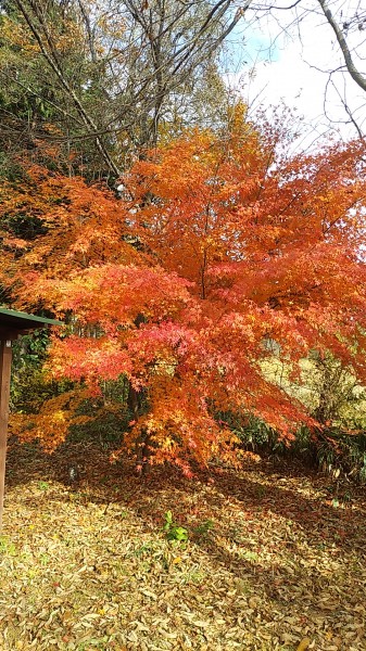 別荘のモミジの紅葉が、まさしく今、ピークを迎えています。おそらく数日のうちに落葉してしまうと思いますが、すでにナラ類の樹木は落葉しており別荘の駐車場は落ち葉でフカフカ状態です。